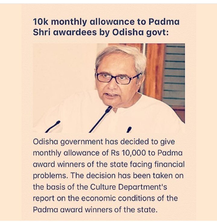 Odisha to give allowance to Padma awardees. Share this: Click to share on X (Opens in new window) X Click to share on Facebook (Opens in new window) Facebook Like Loading... Related Leave a comment Cancel reply Δ