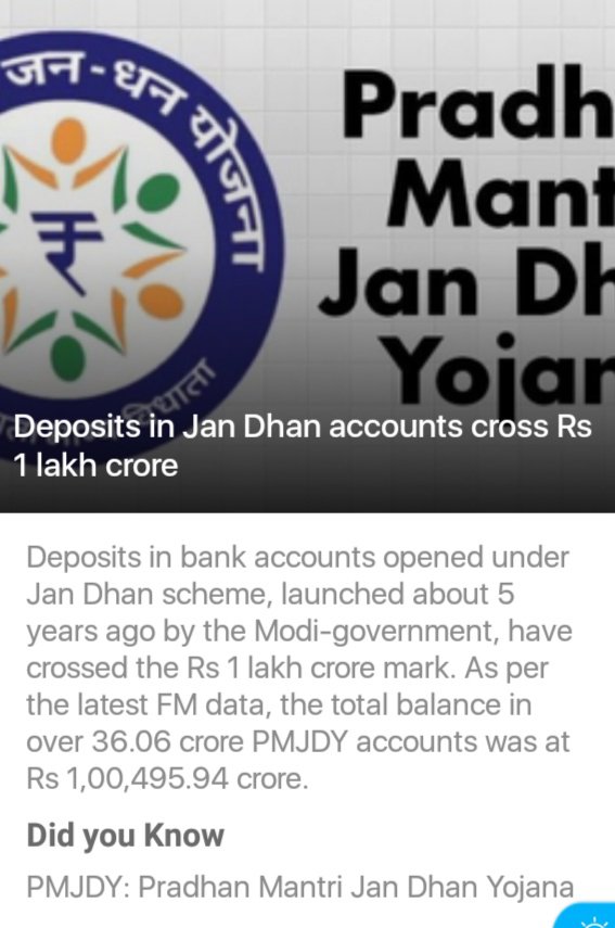 Deposits in Jan Dhan accounts cross 1 Lakh Crore.